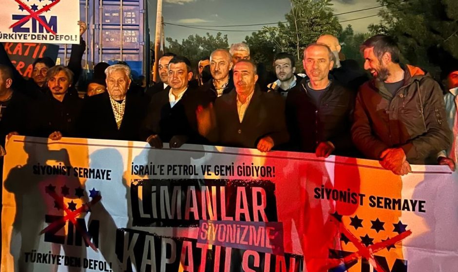 Filistin dostları, liman girişinde toplanarak Siyonizm’e ve el altından ona destek oluşa tepkilerini göstermekteler. .Filistin hamasetinin arkasına saklanan iktidarın, İsrail’le ticarete olanca hızıyla devam ettiğini görmek, iktidarın kendi ambargosunu nasıl deldiğini anlamak için tüm insanları limanlara davet ettiler.